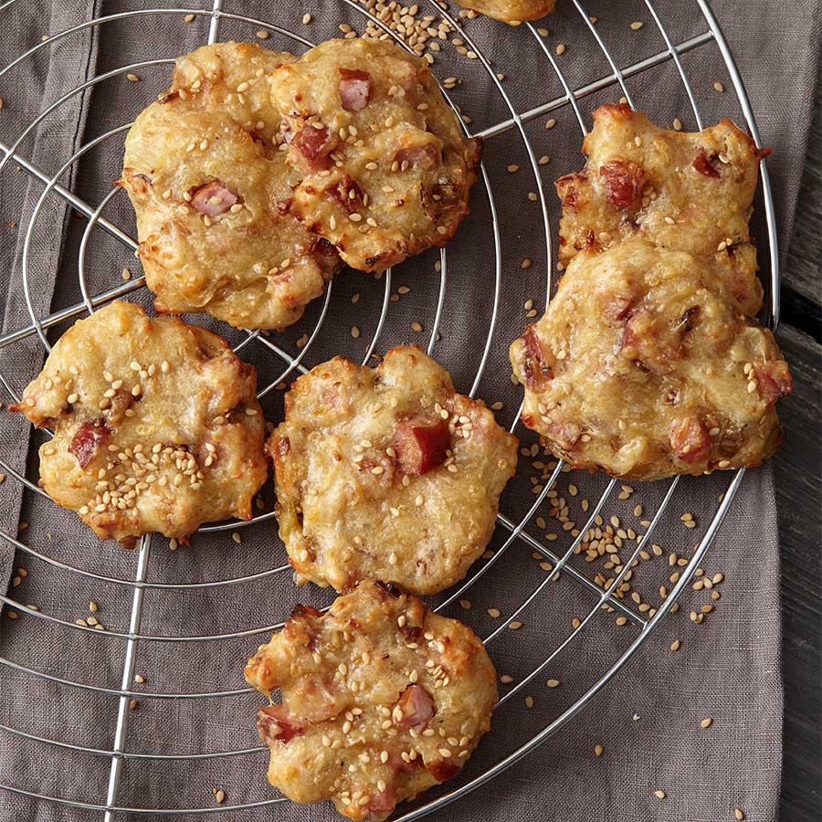 Formez des boules de 3 cm de diamètre puis aplatissez-les et déposez-les sur une grille recouverte de papier sulfurisé.