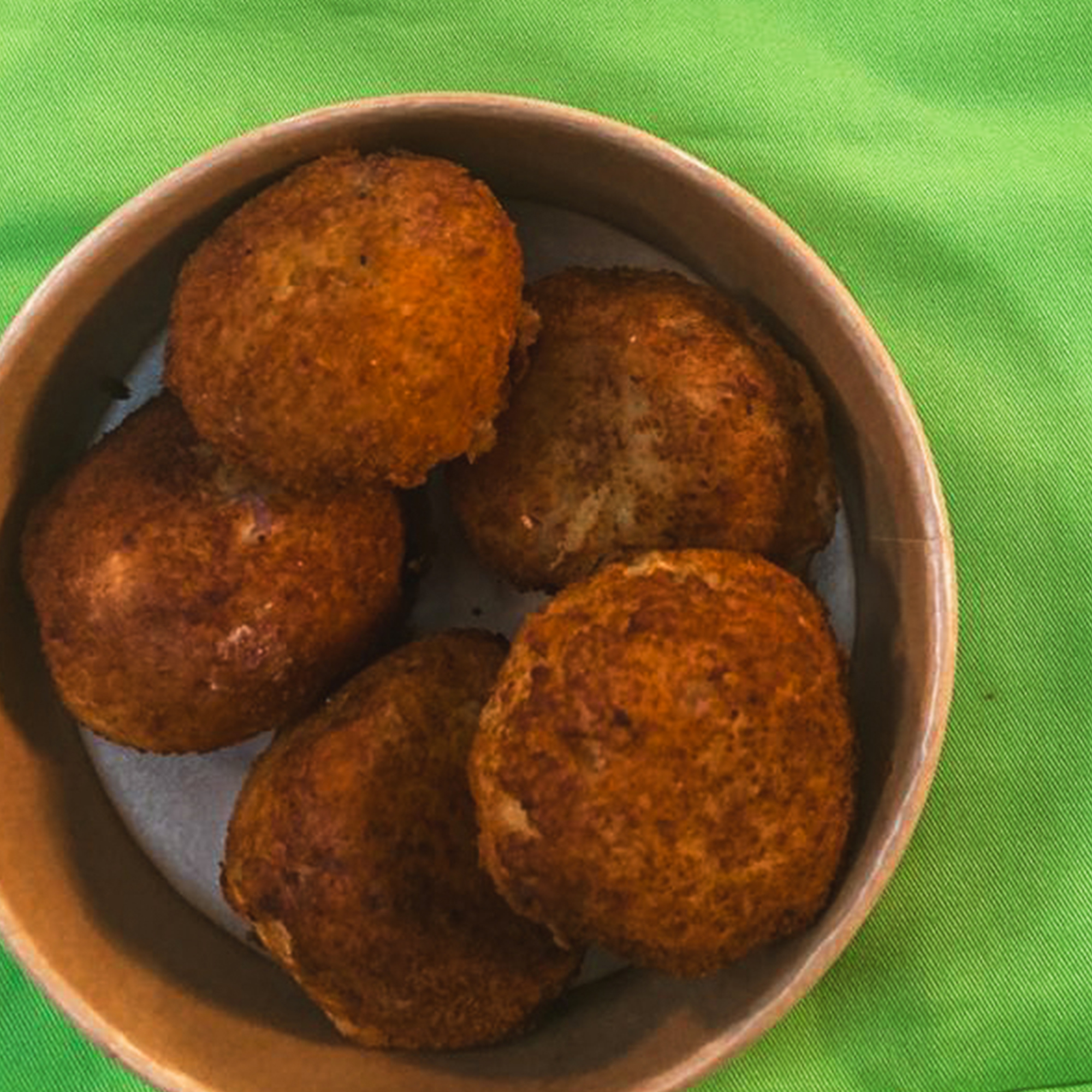 Une fois durcie, former des boules avec ses mains puis les passer dans les œufs battus puis dans la chapelure Panko