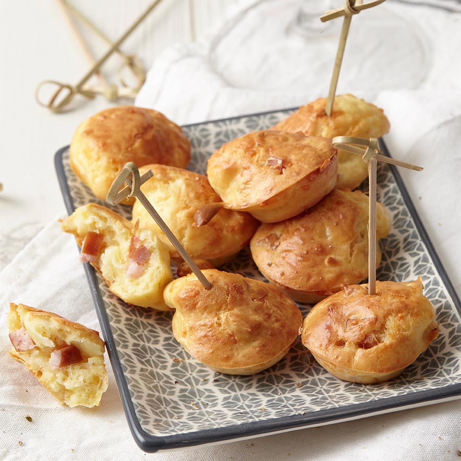 Dans un saladier, mélangez les œufs battus avec le lait, la farine, la levure et le comté râpé.