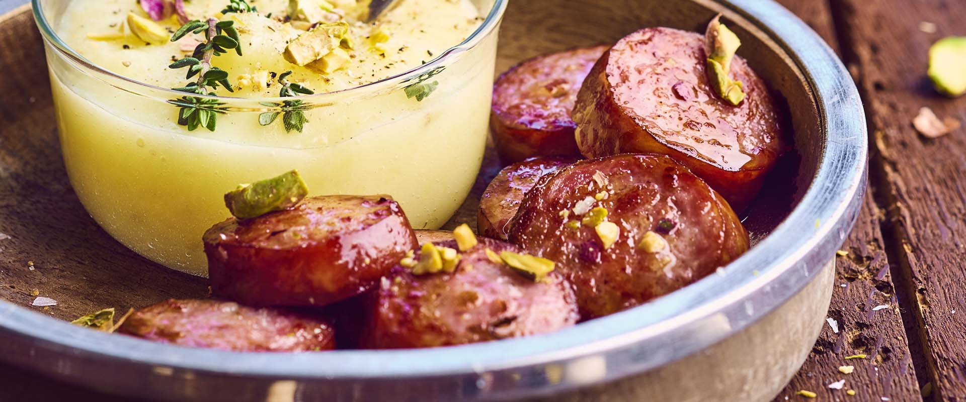 L’IGP saucisse de Montbéliard séduit les gourmands pour son authenticité et pour sa simplicité. Dans une potée, un plat de lentilles, une choucroute, une tarte ou une salade, elle s’adapte à toutes les envies et toutes les tendances culinaires. Déclinez-la comme bon vous semble, elle est divine !